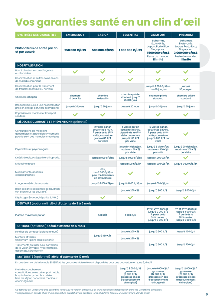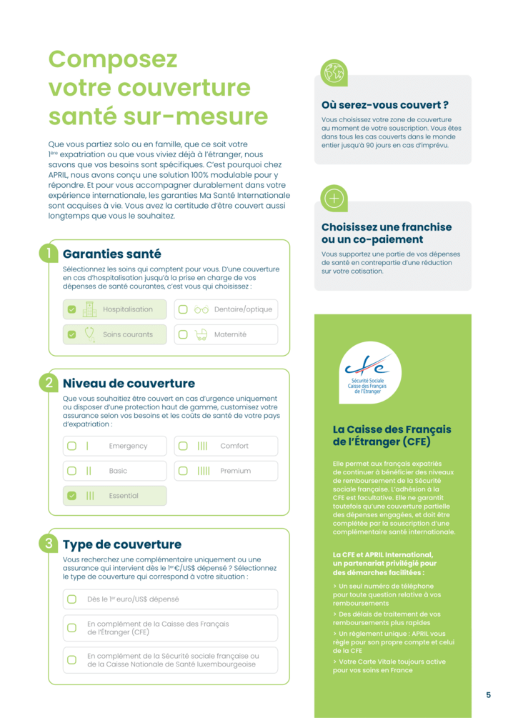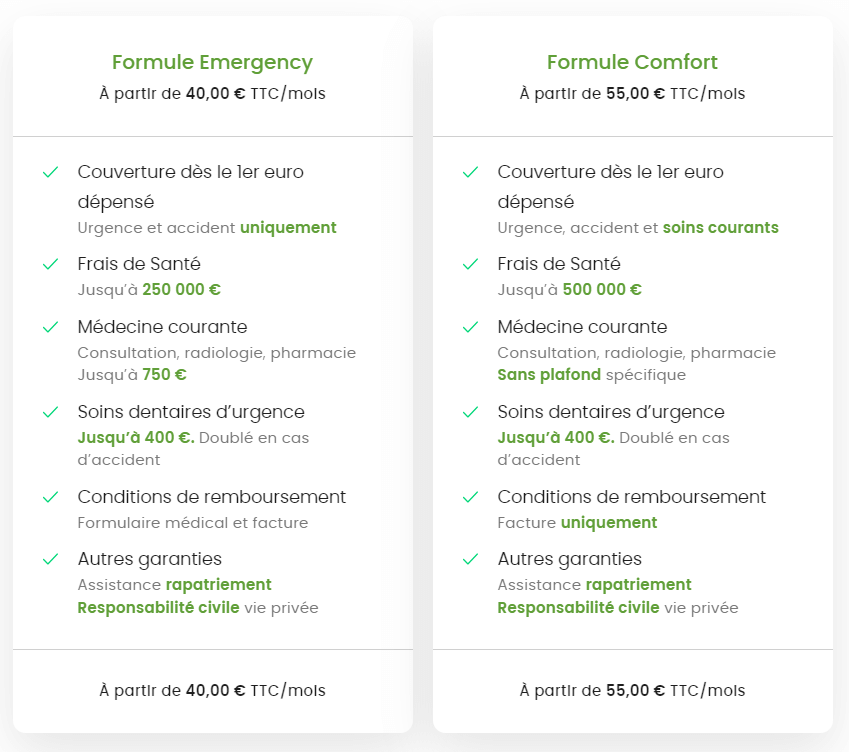 - Tarifs adaptés à chaque zone de couverture et une couverture valable pour les retours temporaires dans le pays de nationalité
