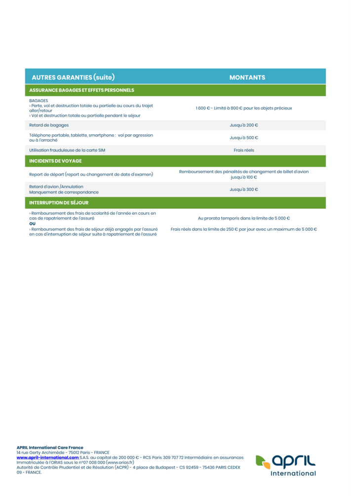 - Des nouveautés comme l’assurance des effets personnels et des incidents de voyage.