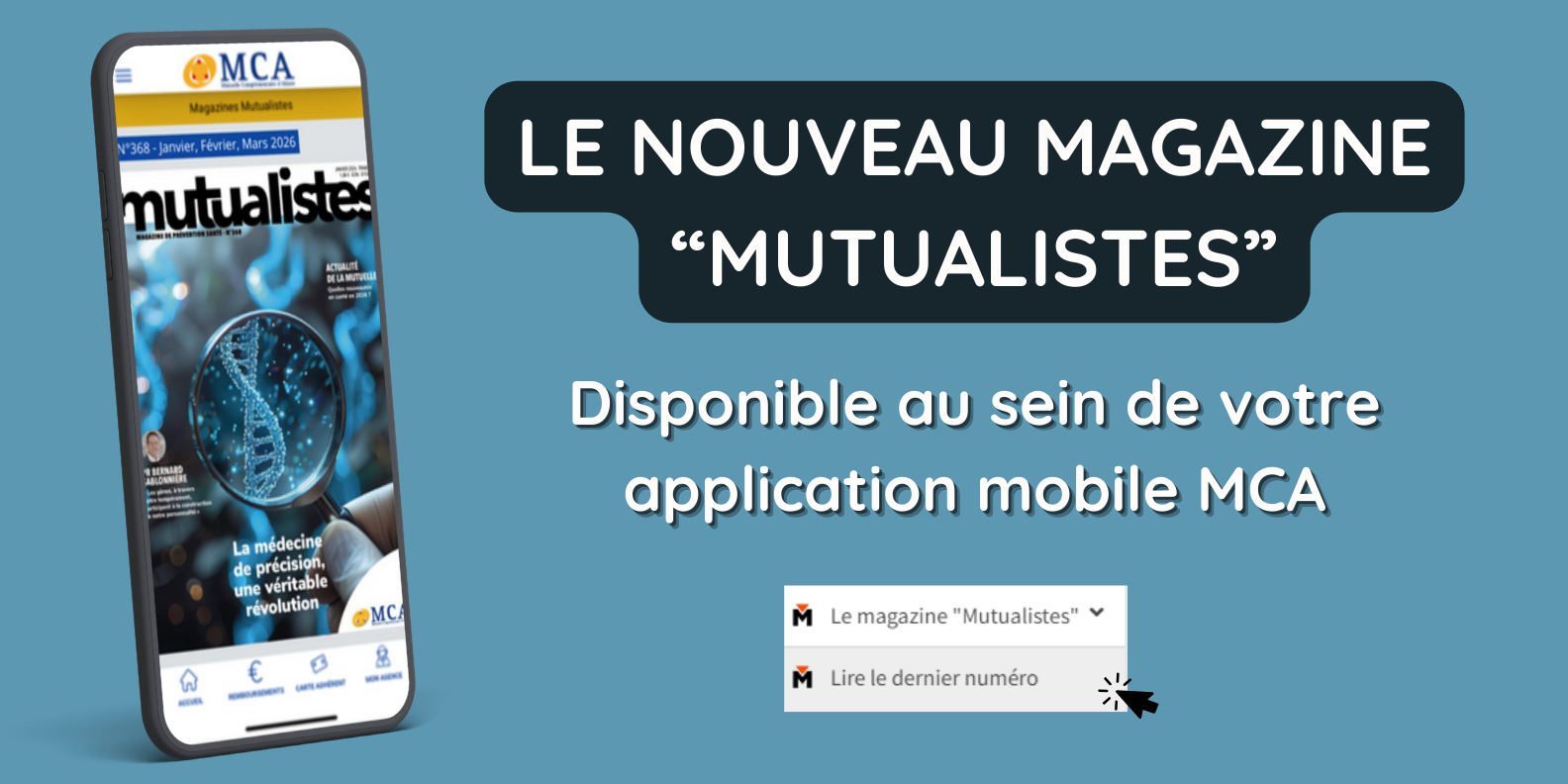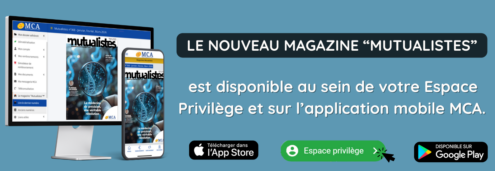Nous vous précisons que la MCA n’effectue pas de démarchage téléphonique auprès de sa clientèle et que ces personnes ne sont en aucun cas mandatées par nos soins. Nous vous recommandons une grande vigilance face à ces comportements.
